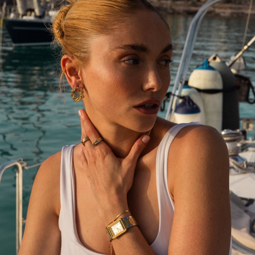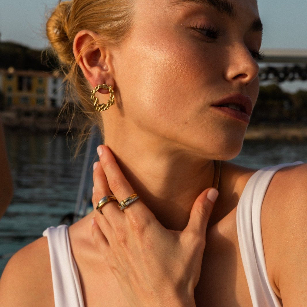 Every Ruagem piece is made to be lived in, not left in a box. We craft our jewelry from premium 304 Stainless Steel — a hypoallergenic metal that keeps its shine without fading, rusting, or staining your skin. Whether it’s a swim in the sea, a workout session, or a long summer day, your jewelry stays flawless.