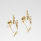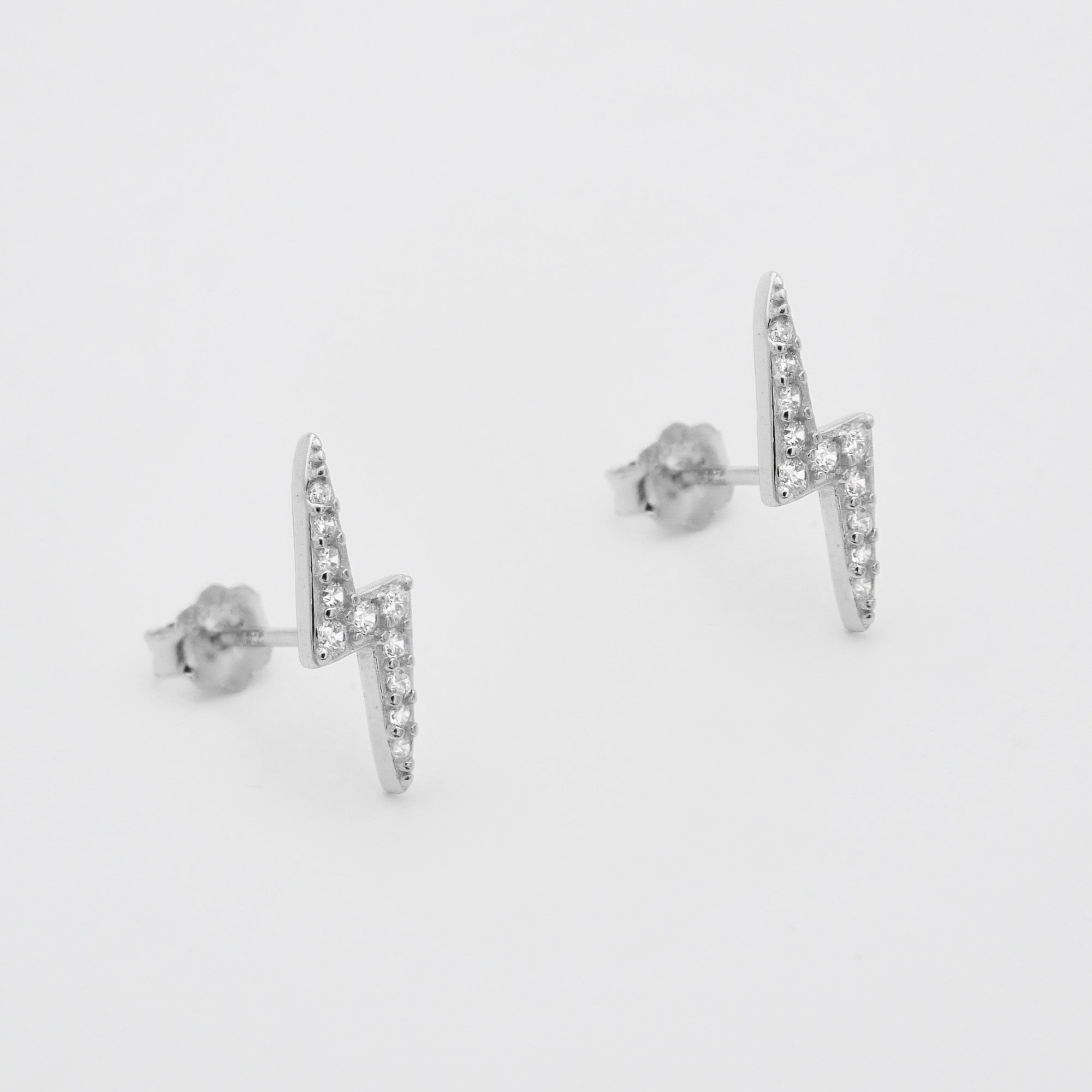 These dainty LIGHTNING bolt Stud Earrings feature a unique lightning bolt design crafted with chic clear cubic zirconia stones. Their delicate size is perfect for dressing up a casual outfit or adding a subtle statement to a formal look.