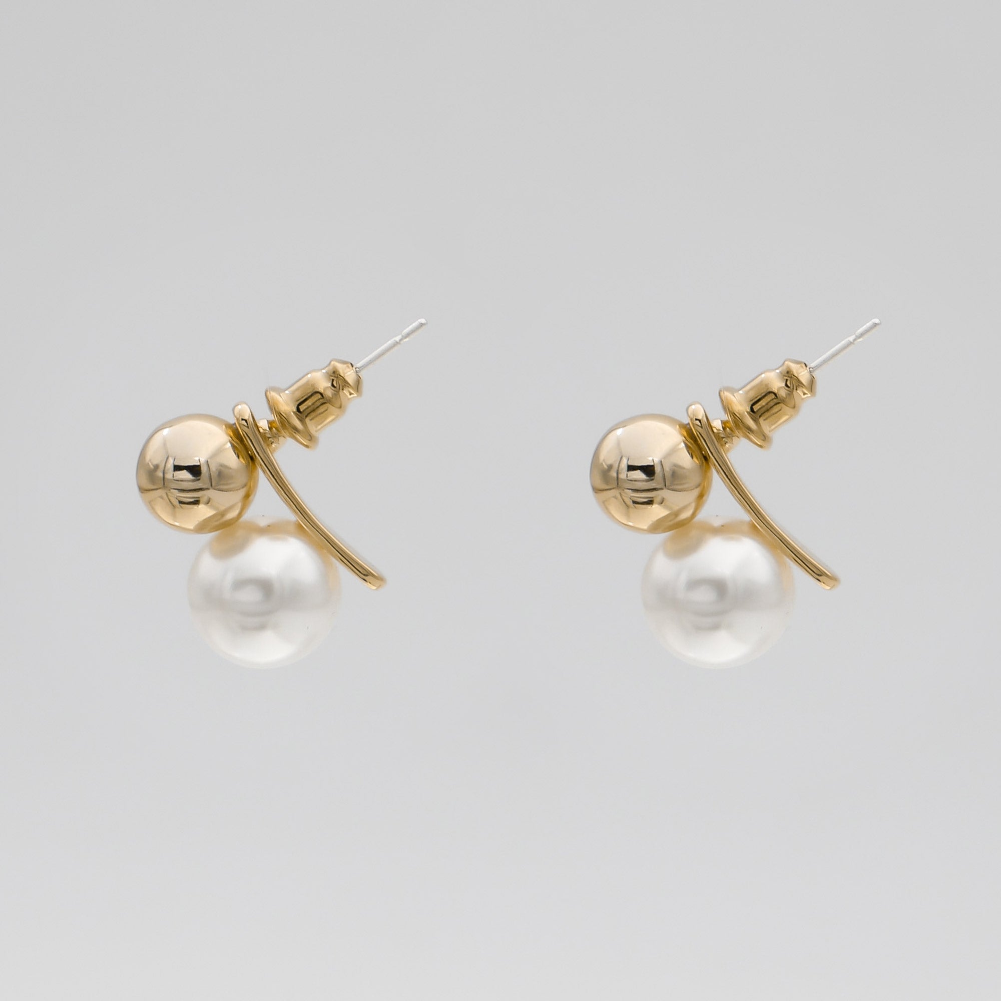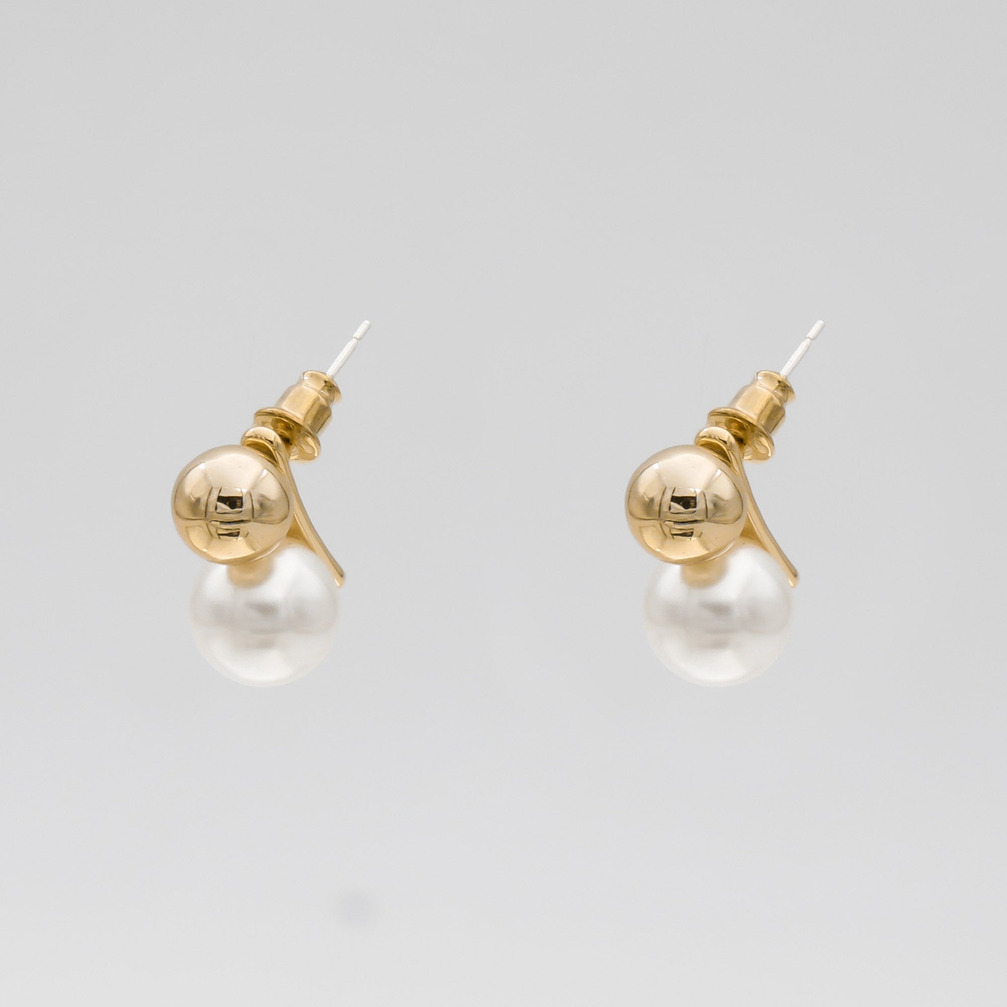 These shiny, silky iridescent RIA pearl stud earrings are your next jewellery obsession. The pearl stone is expertly and perfectly polished for maximum shine then carefully supported with an 18k gold plated hoop, creating a must-have combination.
