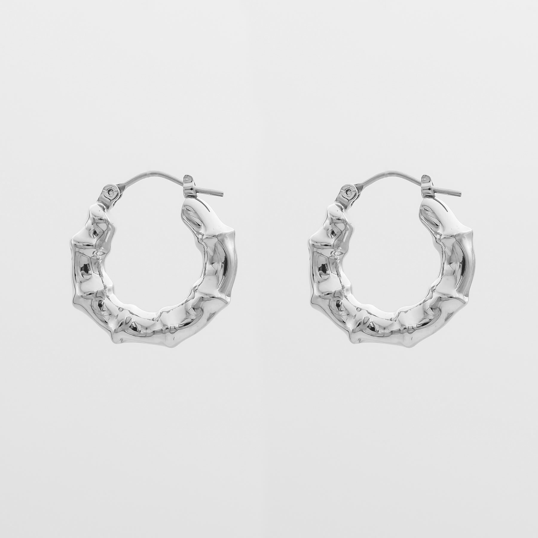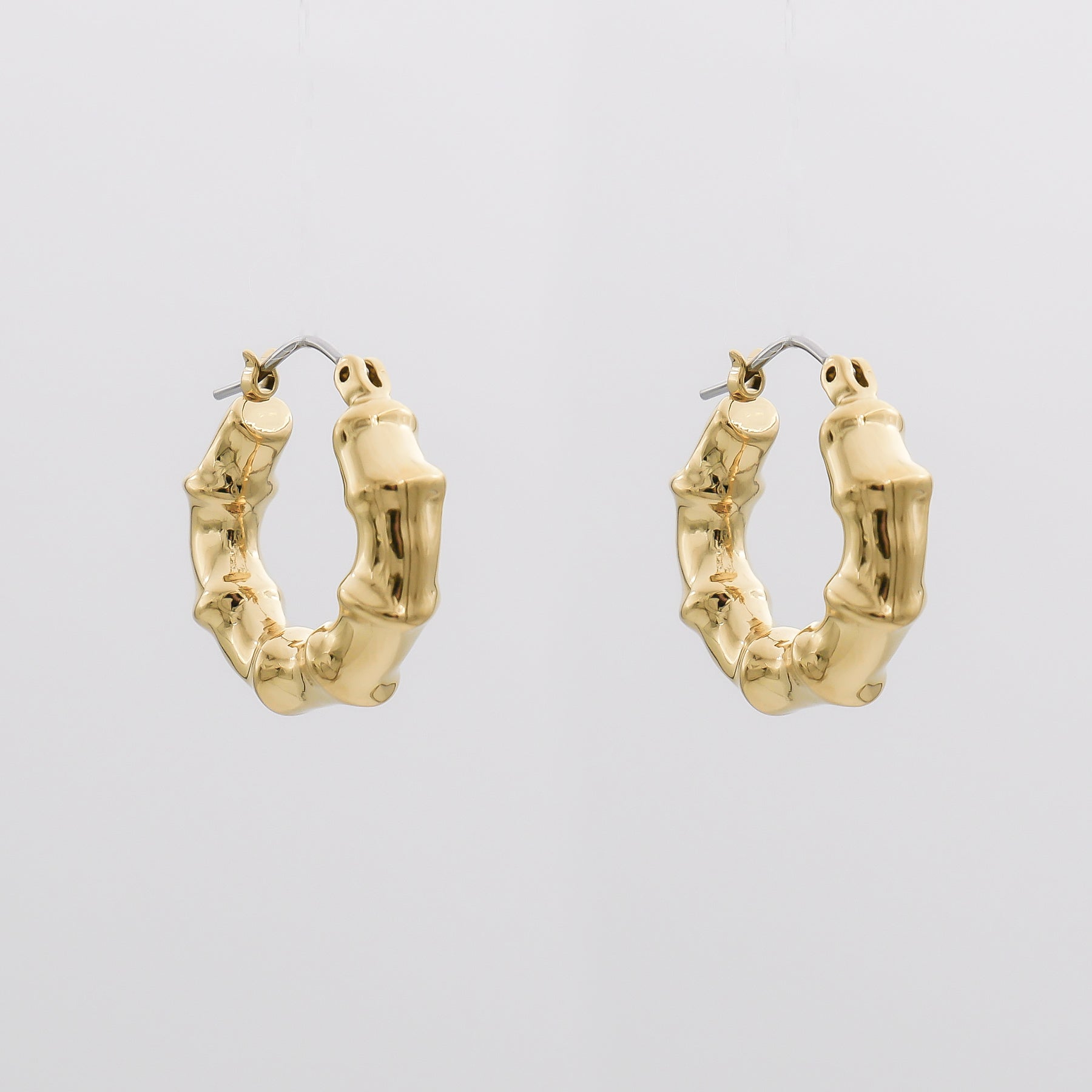 The captivating BAMBOO MINI HOOPS feature a bamboo design, adding a beautiful twist on the time-less classic hoop earrings.
