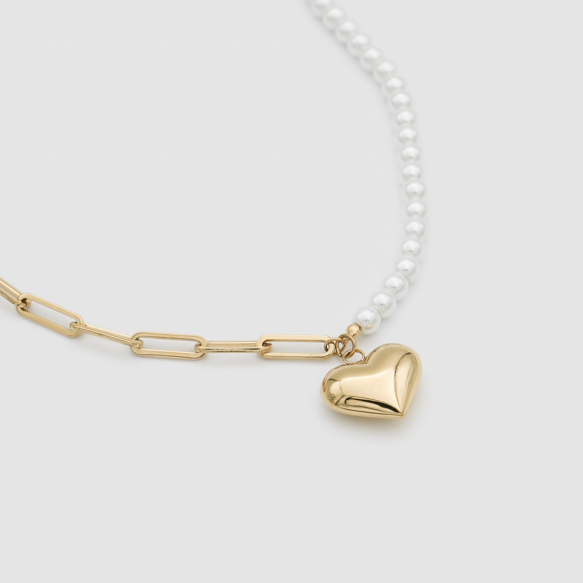 A modern twist on the classic pearl necklace. Combing pearls and paperclip links, this necklace is a must-have. Featuring a love heart pendant at the centre piece of the necklace. Perfect for any occasion, our Zena necklace is the sweetest addition to your jewellery collection. Making the perfect gift for yourself or someone special.